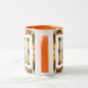 Custom Jolly Automne Hiver Noël Motif Photo Tea Coffee Mug. Dans les couleurs automnales traditionnelles d'orange vif, de vert et de gris ; dans un joli motif géométrique multicolore et maximaliste. Pour des boissons chaudes en hiver et un chocolat chaud gai lors de nuits d'hiver agréables. Changez les trois photos en vos propres photos pour célébrer les souvenirs de famille. Achetez comme un cadeau de table de gardien de fête à petit prix pour elle ou ses grands-parents.