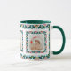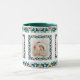 Custom Jolly Noël Motif Photo Photo Tea Coffee Mug. Dans les couleurs traditionnelles du rouge et du vert, avec des touches de violet chaud et d'orange vif ; dans un joli multicolore, motif maximaliste. Pour des boissons chaudes en hiver et un chocolat chaud gai lors de nuits douillettes en hiver. Changez les trois photos en vos propres photos pour célébrer les souvenirs de famille. Achetez comme un cadeau de table de gardien de fête à petit prix pour elle ou ses grands-parents.