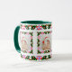 Custom Jolly Noël Motif Photo Photo Tea Coffee Mug. Dans les couleurs traditionnelles du rouge et du vert, avec des touches de violet chaud et d'orange vif ; dans un joli multicolore, motif maximaliste. Pour des boissons chaudes en hiver et un chocolat chaud gai lors de nuits douillettes en hiver. Changez les trois photos en vos propres photos pour célébrer les souvenirs de famille. Achetez comme un cadeau de table de gardien de fête à petit prix pour elle ou ses grands-parents.