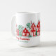 This cute custom real estate holiday mug is perfect for realty business marketing. Customize these Merry Christmas mugs with your company name under the red houses covered in winter snow and lined with festive green trees.