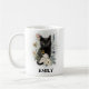 Mug Cute Black Cat Aquarelle Fleurs Nom