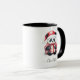 Jolie Panda Père Noël Joyeux Noël Tasse de Noël. Ours de panda de style Kawaii noir, blanc et rouge avec chapeau de Père Noël et un cadeau de vacances. Texte personnalisé.