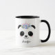 Cute panda reine tasse personnalisée. Joli visage de panda kawaii chubby avec des joues roses portant une couronne rose et arrangement de fleurs bleues. Ajoutez facilement votre nom pour personnaliser la tasse. Vous pouvez changer la couleur de la tasse. Beau cadeau pour une fille, une fille, une petite amie pour un anniversaire ou toute autre occasion spéciale.