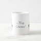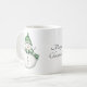 Ce mignon bonhomme de neige portant un foulard à rayures vertes et blanches et une beanie tricotée fait de cette simple tasse l'accessoire parfait pour votre fête de vacances ou petit déjeuner familial. Joyeux sentiment de Noël peut être changé. L'IA a aidé graphisme acheté à des fins commerciales.