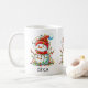 Un motif répétitif d'un bonhomme de neige enchevêtré dans des lumières colorées en fait une tasse festive et amusante pour petits et grands. Personnalisez avec un nom pour un présent plus significatif pendant la période des fêtes de Noël. Grande tasse pour chocolat chaud, thé, café ou lait.