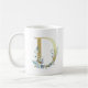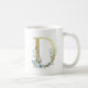 Mug D initial en or avec feuillage floral bleu