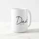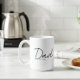 Celebrate the year he officially became a Dad with this stylish and useful black and white coffee mug. Featuring a modern, clean design, the customizable word "Dad" is boldly displayed with "Est." in modern script followed by the customizable year. It's the perfect gift for Father's Day, a new dad, a pregnancy announcement, or any day he wants to show off his favorite title. Created by Simply Farmhouse Press.