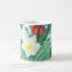 Une tasse blanche décorée de tulipes rouges et de jonquilles provenant d'un tableau original de Judy Adamson, Oil Pastel.