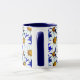 Tasse avec un motif aquarelle de marguerites blanches aux centres jaune doré, sur un fond aux nuances de bleu denim