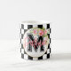 Mug damier noir et blanc rose Floral monogramme