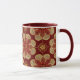 Cette tasse décorative est ornée d'une médaille d'or motif sur le vin. L'intérieur et la poignée de la tasse sont marron. Ce motif provient d'une conception de tuiles originale. Les médaillons et les couleurs riches lui confèrent une atmosphère bohème. Les couleurs comprennent ocher, et pêche, sur un arrière - plan de vin. Utilisez-le sur votre drap de cuisine, salle de bain ou cheminée. Il est parfait pour votre chalet ou ferme de campagne. Cette conception est issue du fabricant de tuiles de l'Oregon Fay Jones Day.