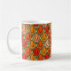 Cette tasse a un design art déco de tulipes de pentagones et trapézoïdes dans différentes nuances d'orange.