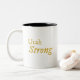 La Mug à café à deux tons "Utah Strong" incarne les tendances contemporaines du design tout en célébrant la résilience et l'esprit de l'Utah. Conçu avec un oeil attentif pour l'esthétique moderne, ce mug mêle harmonieusement élégance minimaliste et messagerie impactée. La typographie audacieuse et élégante de "Utah Strong", en lettres d'or frappantes, est bien visible sur le devant de la tasse. L'utilisation d'accents dorés ajoute une touche de luxe et de prestige, élevant l'attrait visuel de la tasse et faisant une déclaration puissante. Le choix de la police reflète les sensibilités du design moderne, avec des caractères sans empattement élégants qui véhiculent un sentiment de force et de résilience.
