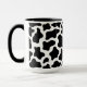 Cette tasse à café bicolore est présentée dans une jolie impression de vache noire et blanche. Montré taille 15oz Personnaliser cet article et choisir un autre style de tasse ou acheter tel quel.