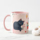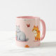 Un design de tasse à café avec un arrière - plan beige clair avec trois chats. Une tasse pour amoureux de les chats.
