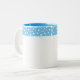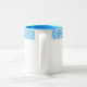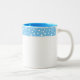 Tasse à café en blanc avec un imprimé pois bleu et blanc mignon sur la garniture. Customisez cet article et choisissez un autre style de tasse ou achetez tel quel.