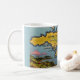 Carte postale vintage et colorée de l'île de Saint-Thomas réorientée sur une tasse.