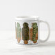 Une collection reconstruite de la culture Mississippian repousse plaques de cuivre poule thunderbird conceptions enveloppées autour d'une tasse.