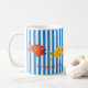 Un charmant, heureux, amusant tasse à customiser, personnaliser ou acheter simple. Bandes bleues et poissons de couleur primaire associés par l'artiste dagdart.