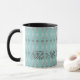 Tasse à café élégant avec une impression turquoise qui peut être changée à n'importe quelle couleur de votre choix. Le texte de la routine matinale peut être personnalisé à n'importe quel message ou le texte est également amovible.
