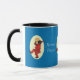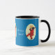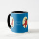 Une tasse de café blanche pour Nowruz, avec une lèvre et une poignée noires et Haji Firuz en costume rouge vif traditionnel, visage noirci et jouant un tambourin ; d'une aquarelle de Judy Adamson.
