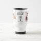 Cette tasse de voyage simple et mignonne dit "Best Cat Papa" en texte noir tendance, écrit à la main avec un empreinte de patte assorti et un endroit pour le nom de votre chaton. Il y a également de la place pour montrer deux de vos photos personnelles préférées de son animal de compagnie.