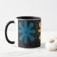 Cette tasse a un design moderne du milieu du siècle des étoiles en couleurs rétro sur un champ de noir.
