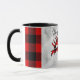 Personnalisez cette "One Of A Kind" Bouge d'Elk Rouge et Noir Plaid ! Il est doté d'une silhouette de taureau rouge et noir sur un Arrière - plan de Noël argenté et blanc entouré de bordures de buffle rouge et noir et de la citation de vacances..."Joyeux Noël"! Art Graphique Original De L'Artiste Kerry Miller