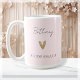 Vous cherchez le cadeau parfait pour demoiselle d'honneur pour montrer votre appréciation pour vos meilleures amies ? Ne cherchez pas plus loin que nos tasses à café en or moderne en forme de cœur ! Avec une police élégante qui indique « Demoiselle d'honneur » et le nom de votre amie en écriture moderne sur un fond rose blush, cette tasse à café est le moyen idéal de remercier vos demoiselles d'honneur d'avoir été à vos côtés le jour de votre mariage. Que vous planifiez une soirée d'enterrement de vie de jeune fille ou que vous souhaitiez simplement offrir un cadeau attentionné et personnalisé, nos tasses à café sont le choix parfait.