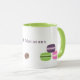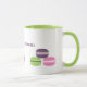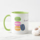 Cette tasse aux macarons français disposés l'un au-dessus de l'autre et un texte personnalisable en violet pourraient servir de décor dans une pâtisserie ou en faire cadeau à un pâtissier. Idéal aussi pour le petit déjeuner, le thé ou le bureau !