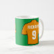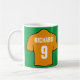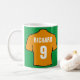 Cadeau pour un fan de football. Mug avec une chemise de football en or ancien. Personnalisez avec votre choix de nom et de numéro.