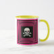 This mug features a stylized skull with cross bones, placed in the center of nested geometric frames, on a sober background. The design blends minimalism and graphic structure for a modern and assertive aesthetic. Perfect to add a rebellious and original touch to your coffee breaks. Ideal for lovers of alternative art, bold style or contemporary decor. A mug that doesn't go unnoticed.