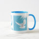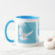 Tasse à deux tons imprimée avec le nom emblématique O et Orisha Obatala. Texte avec dessin de brèche entre deux pigeons blancs.