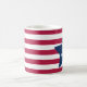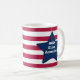 Conteneur de boisson à café de la tasse de café imprimé avec le papier de lettres rouge blanc et bleu de Dieu Bless America et rayures design par TheFabricSeal à l'adresse Zazzle.com #ZazzleMade TheFabricSeal ©️ Original. Bandes de broches horizontales rouges et blanches avec une grande étoile bleue et la phrase en lettres blanches à l'intérieur. Parfait pour mélanger et faire correspondre Americana U.S.A. patriotique national stars et rayures drapeau, fierté nationale et 4ème. De Juillet célébration de la naissance de notre beau pays avec des conceptions thématiques et des produits ensemble. Idéal pour compléter mode décontractée, décoration intérieure design, célébrations, divertissement, sports, vacances et plus encore. Donnez une tasse sur commande de Zazzle à quelqu'un de spécial, ou offrez-vous un design qui vous apporte la joie. Disponible en 11 ou 15 onces. Adaptée au lave-vaisselle et au four micro-ondes. Fabriquée en céramique solide.