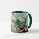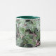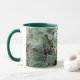 Une tasse blanche décorée de lierre dépoli, avec une jante et une poignée vert foncé