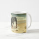 La peinture de Digitals d'un beau Pinscher de dobermann gambadant sur la plage comme ressacs lavent sur le rivage et des empreintes de pattes de partir dans le sable.