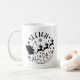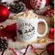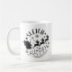 Cette tasse à café de vacances amusante présente l'image textuelle "Sleigh All Day" avec des flocons de neige et le Père Noël dans son traîneau. Parfait pour la saison de Noël.