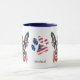 La caractéristique de cette tasse unique est l'image aquarelle d'un chien de Boston Terrier enveloppé dans un drapeau américain et portant des lunettes de soleil rouges. L'image est sur deux côtés de la tasse, avec une étoile et raye empreinte de patte et votre texte personnalisé entre eux.