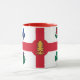 Mug avec le drapeau de Montréal, la ville la plus peuplée de la province de Québec, Canada. Drapeau blanc avec croix rouge, pin blanc, fleur de lys bleu, rose rouge de Lancaster, shamrock et chardon