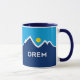 Mug avec un dessin avec le drapeau d'Orem, Utah. Un drapeau bleu, blanc et jaune avec des sommets de montagne et le soleil au centre