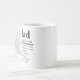 Célébrez votre héros de tous les temps avec cette chatte de définition papa hilarante et réconfortante ! Parfait pour la Fête des pères, les anniversaires, Noël, ou simplement parce que, cette tasse présente une définition ludique du "papa", de style dictionnaire, qui frappe toutes les bonnes notes, depuis le tueur des araignées jusqu'au caisson des blagues affreuses. Customisez et personnalisez le texte pour placer votre propre spin drôle. Idéal pour les cadeaux de la Fête des Pères, les cadeaux d’anniversaire de papa amusants, les peluches de Noël ou les tasses de bureau pour les papas. Qu'il sirote son café du matin ou qu'il l'affiche fièrement sur son bureau, cette tasse ne manquera pas de lui faire sourire.