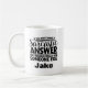 Mettez un sourire sur leur visage avec ce design amusant qui comporte les mots, "SI VOUS NE VOULEZ PAS DE RÉPONSE Sarcastique VOUS DEVRIEZ VRAIMENT DEMANDER À QUELQU'UN D'AUTRE Jake" en caractères gras et script. Cliquez sur "Personnaliser ce modèle" pour ajouter votre nom. Si vous avez besoin d'aide supplémentaire pour customiser ce produit ou tout autre produit dans ce magasin, envoyez-moi un courriel à zazzlevibes @gmail.com. Visitez notre boutique www.zazzle.com/YBNormal1 pour plus d'articles uniques. ©Karen Hall