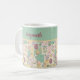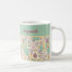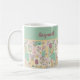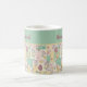 This pretty Easter mug features a patchwork of festive spring designs of Easter eggs, bunnies, wild flowers, and strips of white polka dotted pastel colors. The colors include pretty pale green, pink, mauve, yellow, and more...just right to welcome spring. This mug would be great Easter gift, or would be a whimsical touch and reminder of spring year round.