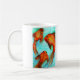 avec un design artistique original de la peinture aquarelle de Sacha Grossel de trois poissons rouges orientaux orange ou de Koi nageant dans une eau sereine couleur aqua. Un design paisible inspiré de l'art japonais et asiatique pour la chance Feng Shui water chi, ce design lumineux et dynamique laissera une impression durable.