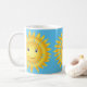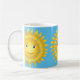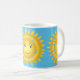 Mug éclat heureux du soleil. Arrière - plan bleu