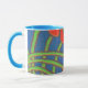 Tasse blanche avec sérigraphie originale design égyptien, poignée bleue et jante