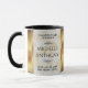 Célébrez le 3ème anniversaire du mariage en cuir avec deux ou trois de ces chopes élégantes ! Un élégant lettrage noir avec des confettis hexagonaux dorés sur un luxueux arrière - plan en cuir blanc bordé d'une feuille d'or apporte une touche mémorable à cette occasion spéciale et à ce jalon. Customisez avec les noms des couples, les dates du mariage et les messages de félicitations. Design © W.H. Sim, Tous droits réservés. Voir plus sur zazzle.com/expressionsoccasions