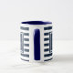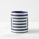 Tasse à monogramme personnalisée et tendance avec des initiales personnalisées avec un motif à rayures bleues marine et blanches avec vos initiales et le nom de votre famille avec la date d'établissement indiquée dans un carré bordé de bleu marine avec un texte blanc classique. Conçu par Thisisnotme©