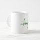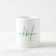 Élégant Script Vert Moderne Monogramme Café Mug. Un élégant monogramme de script vert combiné à une police de caractères noir propre san-serif donne un look contemporain.