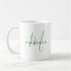 Élégant Script Vert Moderne Monogramme Café Mug. Un élégant monogramme de script vert combiné à une police de caractères noir propre san-serif donne un look contemporain.